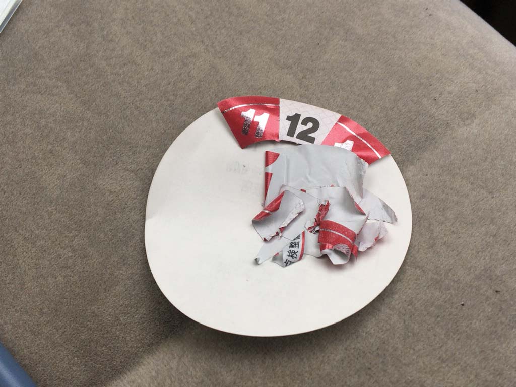 もちろん僕はやましいところはないので問題ないのだけど、脂汗を滲ませながら僕の番を待って、特に車内のチェックをされることなくチェック終了…と思いきや、前回の検査のステッカーが剥がされていないので、あれをレーンに進む前に剥がしてもらわないと再検査になってしまいます。と言われた。