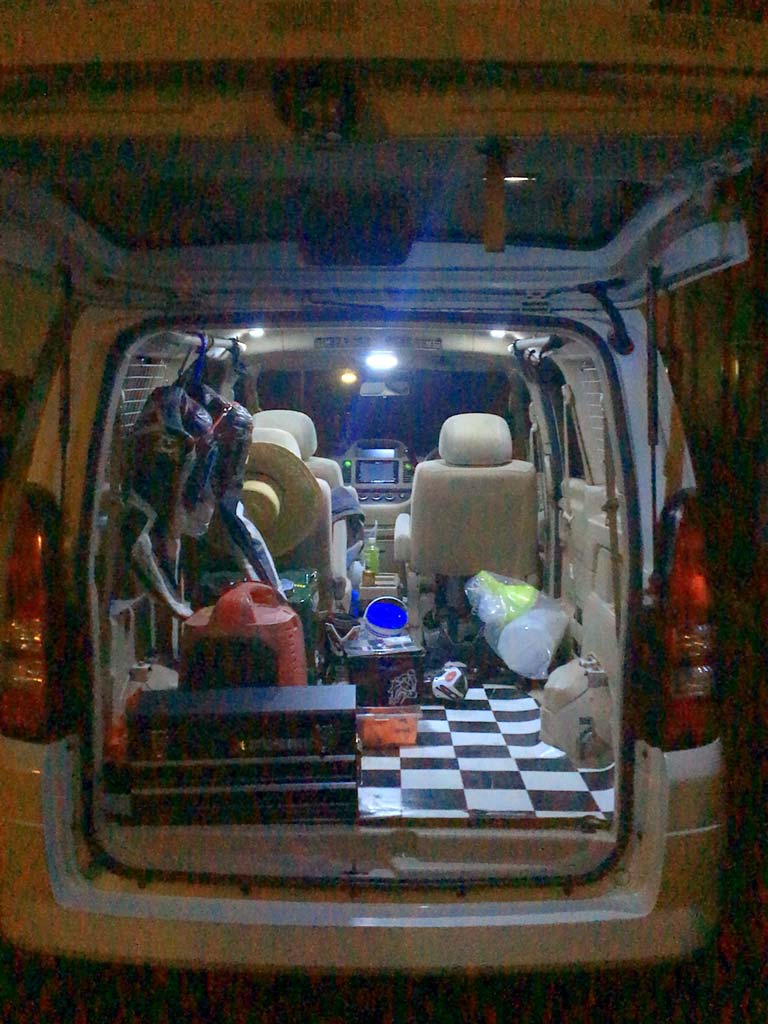 朝起きてご飯を食べたりシャワーを浴びたりと準備をしたのち、必要な書類をもう一度確認しようとセレナから車検証他諸々を降ろしたついでに、この前ずいぶん面倒な想いをして直した水没ヘッドライトはどんなかな…?と見てみると…