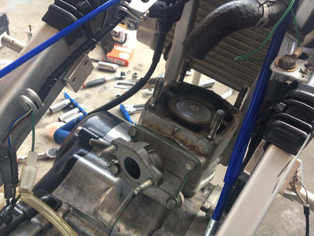 ピストンとピストンリング、なんかベアリングと横から入れる棒みたいなのを新品に交換してた。