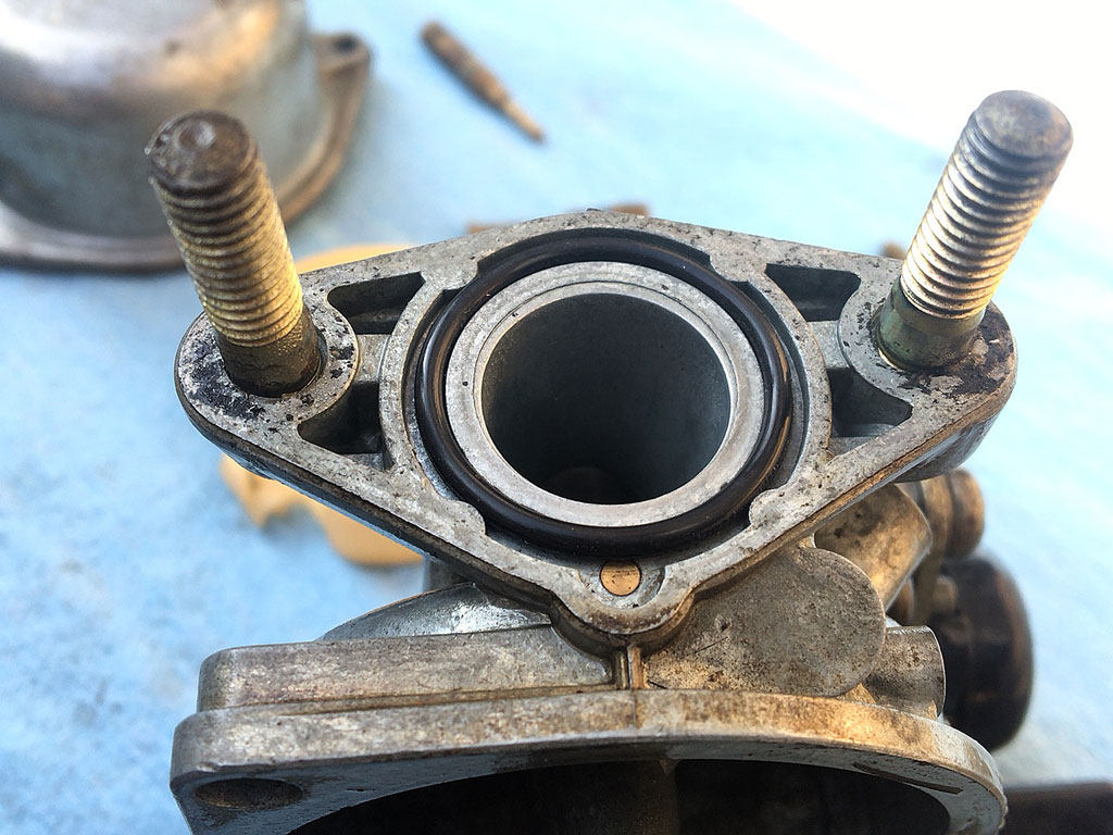 ちなみに、フロートのパッキンは潰れて平べったくなった上にプラスチックみたいにカッチカチになっていて、シリンダー側のパッキンも潰れて千切れて酷いことになってたので、一緒に交換することにした。