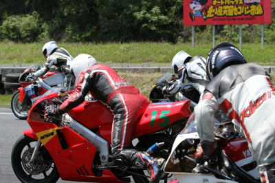 1〜2コーナーを抜けて問題のS字。タラヲさんがNSRを押してコースを出るのが見えた。