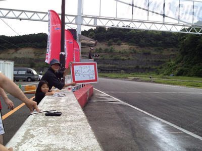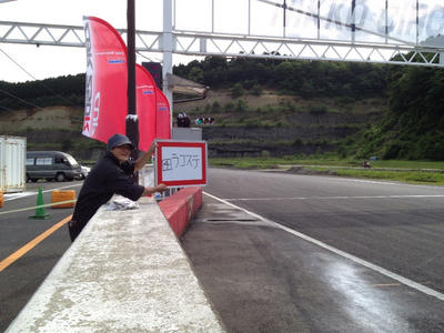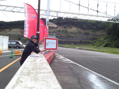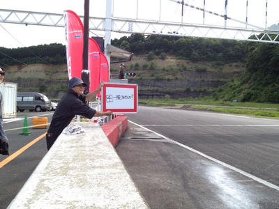 上から2番目の1番左を指差しながら出した時に元監督が首を捻りながら1コーナーに進入していったので、この一連の妨害工作は元監督の精神をかなりグラグラとシェイクしたに違いない。あと監督は次からMFJのライセンスの備考欄に『眼鏡等』と書かねばなりません。くっくっくっ。