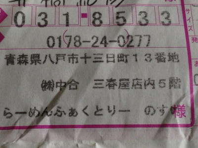 今日の午前中に青森は八戸のらーめんふぁくとりー のすけから荷物が届いた訳ですけれども。