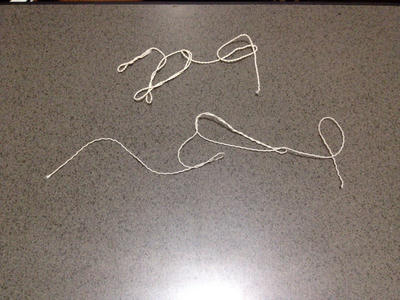 たこ糸が全部そうなのか判らないですけども、今日使ってみたたこ糸は3本の糸をこよってあったんですけども、それを解してみると更に4本の糸をこよってあった。
