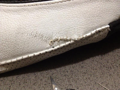 そんで、とある情報筋(モトドナルド氏)によると、縫って木工用ボンドを塗っとけば取りあえずはOKってコトで、ツナギの修理に取り掛かります。