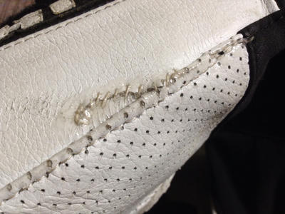 今日仕事から帰って昨日縫った後で木工用ボンドを塗りたくっておいたのを見てみたら、乾いて透明になっていた。