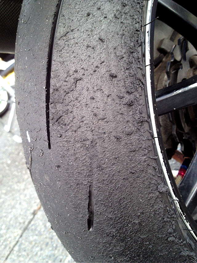 グリップが信用出来ない状態でアクセル操作と体重移動の工夫でなんとかしようっていう練習をした後で、タイヤを新品にするとタイムが一気に上がるのだよなぁ…。
