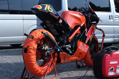 なぜ私が乗らなかったのかと言えば、僕とタラヲさんは同い年のチームメイツである以前に猛烈な負けず嫌いなので、初めて乗るバイクでタラヲさんのタイムを抜こうとムキになって走る可能性が多々あり、その結果転倒してタラヲさんが決勝に出場出来ないというような可能性が考えられたため、アルプスさんに白羽の矢が立ったと、そんな次第なのですf(^_^;)