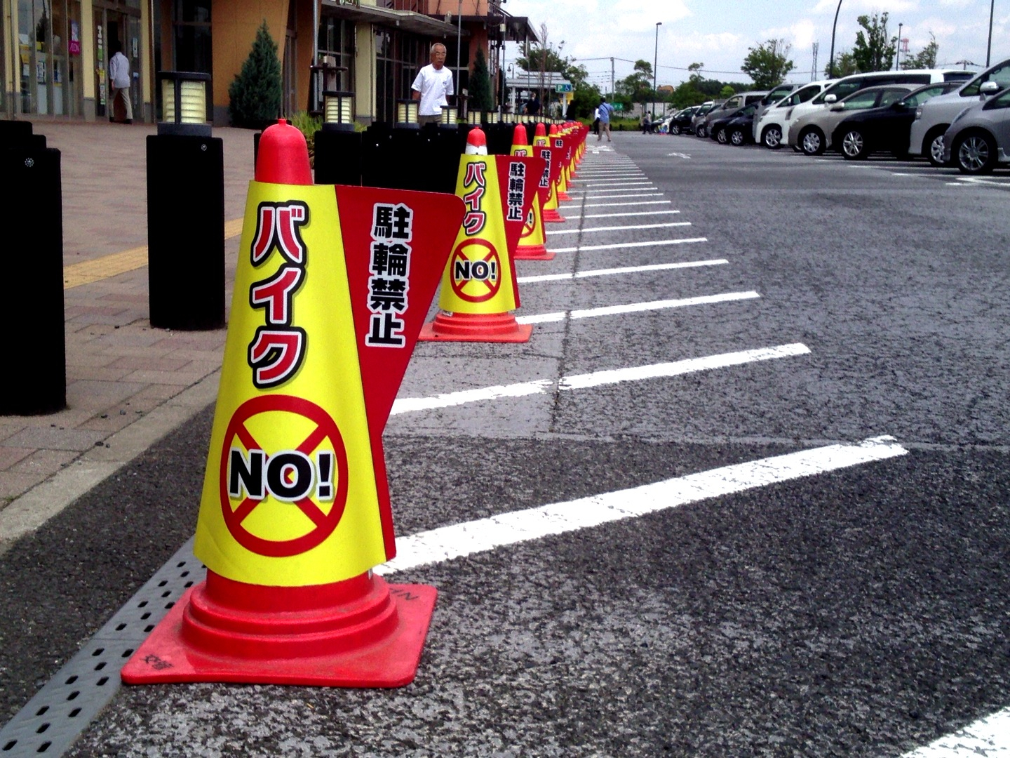 途中幕張のSAで一服しようと思って寄ったんですけどね、バイク駐輪禁止のコーンが執拗なまでに並べてあった。