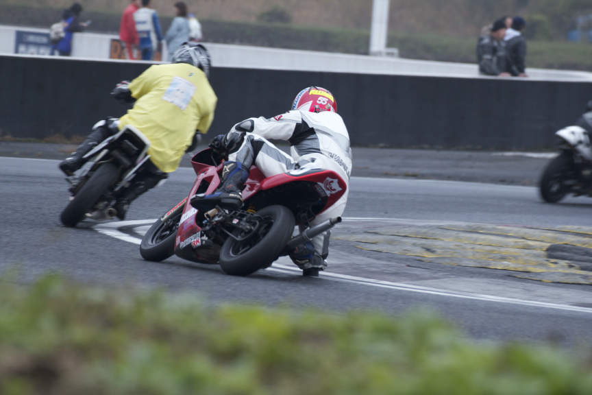 今回は練習走行がフルウェットで、予選がハーフウェット、決勝がレコードラインはウェットパッチちょい残しのほぼドライって感じで、走行毎に条件が大幅に変わったのもあったし、そもそも順位そっちのけでレースを楽しむっていう計画だったので、空気圧を測ったくらいでサスのセッティングもいじらなかったし、ログの解析もしなかった。スプロケなんか9月のプラ4最終戦の決勝のままで実際いくつにしてたのか忘れたし、セッティングシートも記入しなかった。