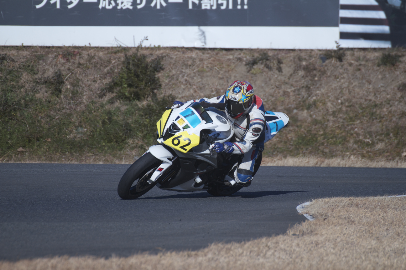 それは結果的にまったくもってその通りだったのだけど、今日はいつものフルバンク中の正面とか流し撮りとかじゃなくて、進入とか切り返しのこれまで狙ったコトがないシチュエーションとか、画面一杯に1台を撮るんじゃなくて、部分的に切り取ってみるだとか、背景を良い感じにしてみるだとか…要はいつもと違うコトをじゃんじゃん試してみようぜ♪っていうテーマで練習してみたのだけど、チャリンコであちこち移動したりいろいろ考えたりしながら撮ってたら1時間撮ってて120枚くらいしか撮ってなかった。
