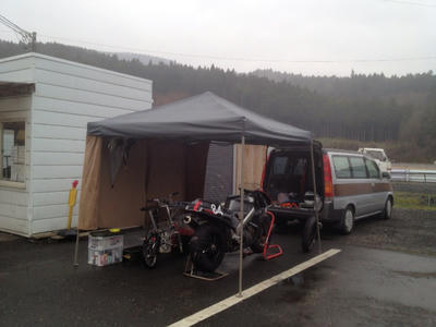 良く見ると隣りにテントを張ってたはずのにせものレーシングさんもASANOさんがバイクを外に押して行って、サクッと撤収していなくなってしまった。。