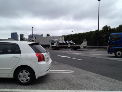 昨日までアホみたいに暑苦しくてただ座ってるだけで命の危険を感じるくらいだったのに、今日は半袖だと肌寒いくらいで、そのうえ強い雨が降ったり止んだりしてたんで『帰り大変だろししまる。今バイク積んでないから載せてってやろうか?』と優しさを見せるフリをしつつ高速代をせしめる作戦を展開。