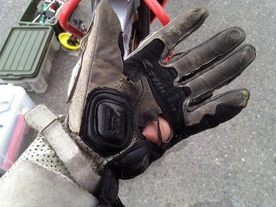 で、15分を3本ばかり練習したんですけども、3本目にコースから車に戻って、グローブを外そうとしたらなにやら違和感がある。