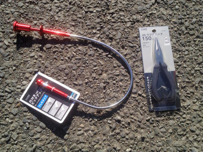 で、しょっちゅうボルトやナットをカウルやエンジンの隙間という名の暗黒空間に送り込んでしまう自分としては、以前から先っぽが磁石になってるラジオのアンテナみたいなヤツとか、手元でグイッと押すと先っぽからがエイリアンの口みたいに爪が出て来てものを拾えるヤツとかを買いたかったんですけども、ずっと忘れてた。