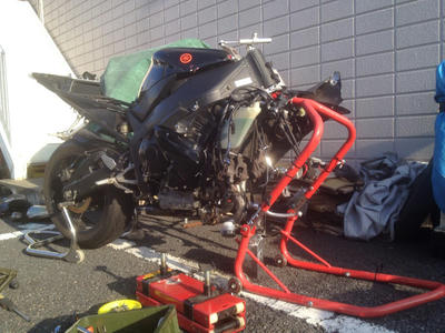サーキットを走ったらそれなりにグッとくるタイムを出せて、同じセッティングのまま1日に1,000km以上の距離をフラフラできてしまうような乗りやすさの素敵な相棒で、最新のR1には逆立ちしても性能では勝てないのだけど、乗れる時も乗れない時も常に愛着はMAXで有り続けたバイクを廃車にするのは胸が痛いですが、起こってしまったことは起こってしまったこと。