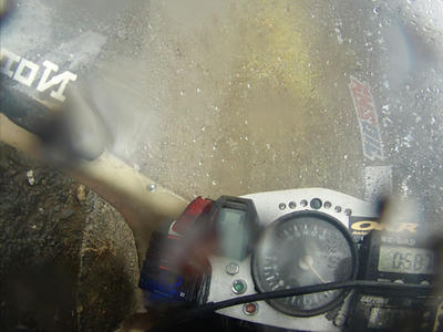 3コーナー手前のブレーキングで転けたのだけど、初めはブレーキ残したまま進入しようとして、『雨の走行はコーナー進入前にすべてを終わらせておく』っていう鉄則を破ったせいで握り転けしたんだと思ってたんです。
