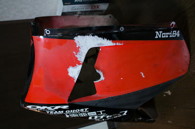 でもレースの時くらいはそれなりにしておきたいし…でも面倒だし…ってことで、削れてしまったところはもうそのままで良いので、色だけそれとなく塗って隠してしまう作戦。