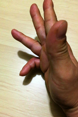 『カタカタカタカタ…スタン!痛っ!カタカタカタカタ…スタン!痛っ!』と小声でボソボソ言ってるのを変な目で見られつつようやく仕事が終わる頃には少し指が太くなってたけど、外した直後よりはだいぶ動くようになってた。