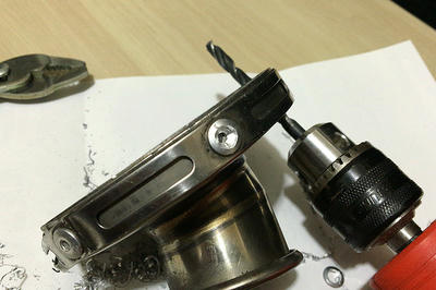 サンダーでも使えれば頭を削り落としてポロッと取れるのだろうが…マンションの中でサンダーはねぇよな…それも平日の夜に…とか思いつつ、ネットでちょっと調べてみたら、リベットの元の穴と同じくらいの径のドリルで頭側からちらっと削ってやれば良いらしいじゃないですかね。