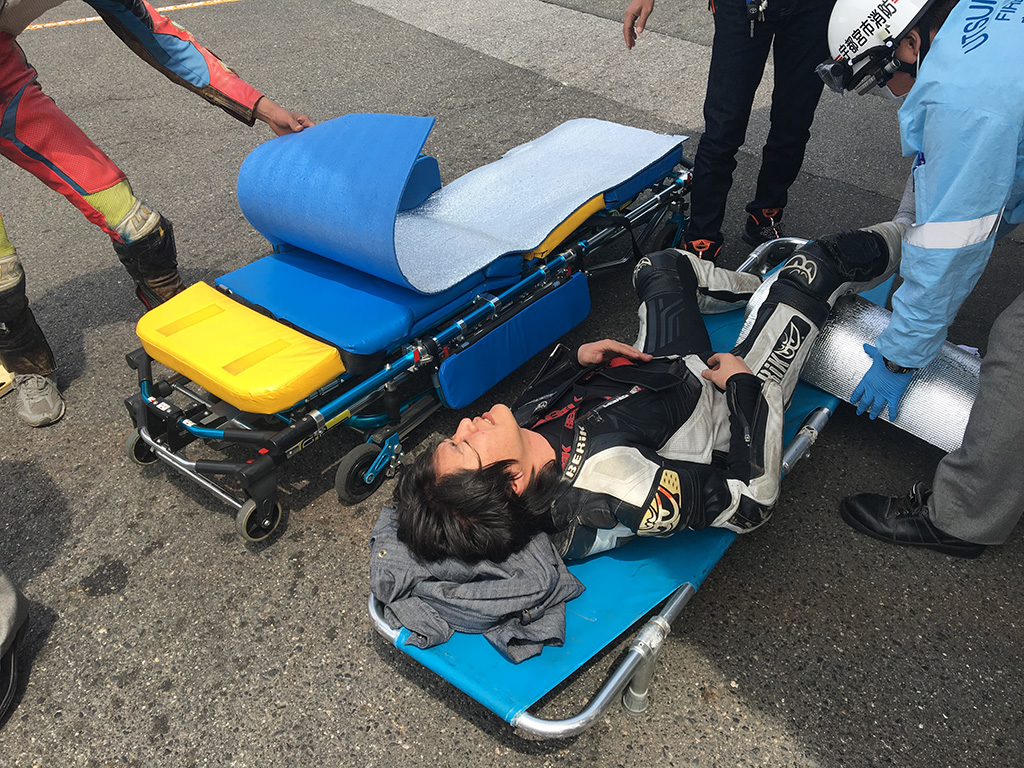 救急処置のところに運ばれるなり『この痛み方ではツナギを脱ぐのは無理ですね…切りましょう!』とか言われたので、『大丈夫、脱げます!問題ないす!!』とかいいつつ、奇声を発しながら意地で脱いだ。目から何か水みたいなものだちょろっと流れた。