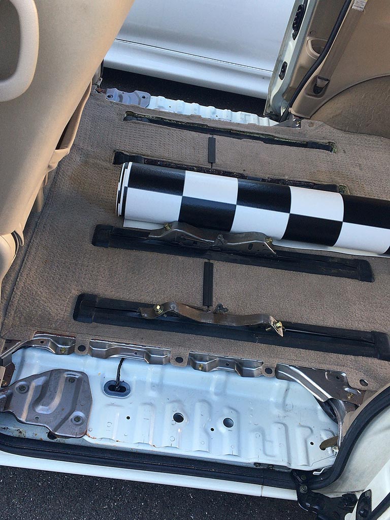 今回セレナはシートを外すと床がフラットなので、そのまま水やオイルがこぼれた時用のクッションシートだけ貼っておくことにする。