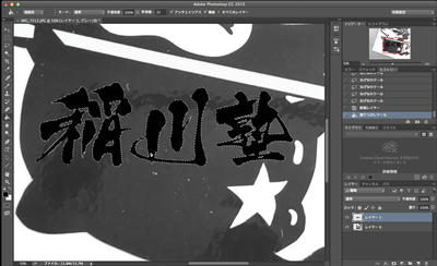そんで、ロゴの部分の水平を出したりグレースケールに変換してからコントラストを上げてみたりしてから大雑把に選択、その後細かく範囲選択を修正。
