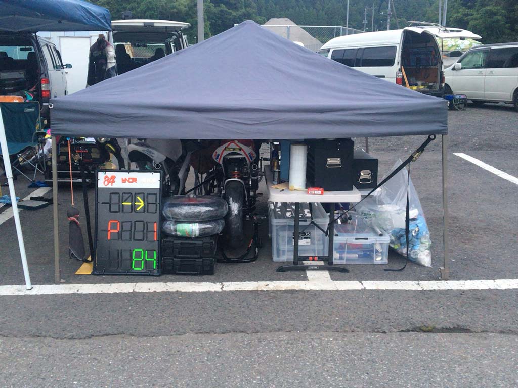 我々ゼッケン84、YNO Racing + 稲川塾チームの作戦は、初め30分を僕、塾長さんに交代して30分後に塾長さんがピットインして給油+各所増し締め後塾長さん継続。