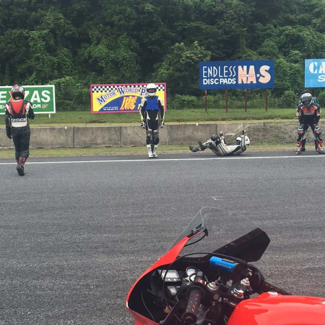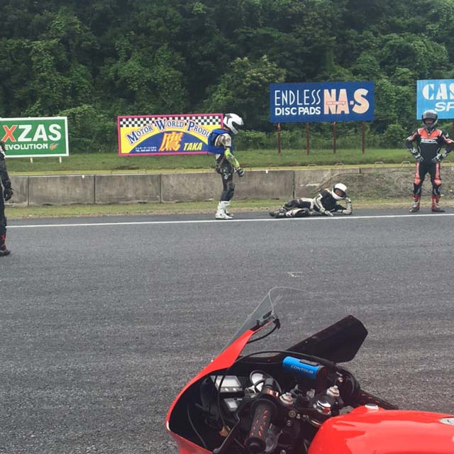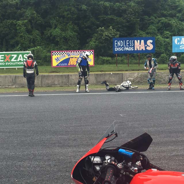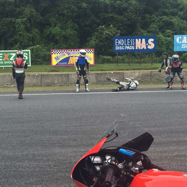 単独で周囲を巻き込まず怪我のない転倒はすべからくネタ。これはサーキットの掟のひとつだと思います。
