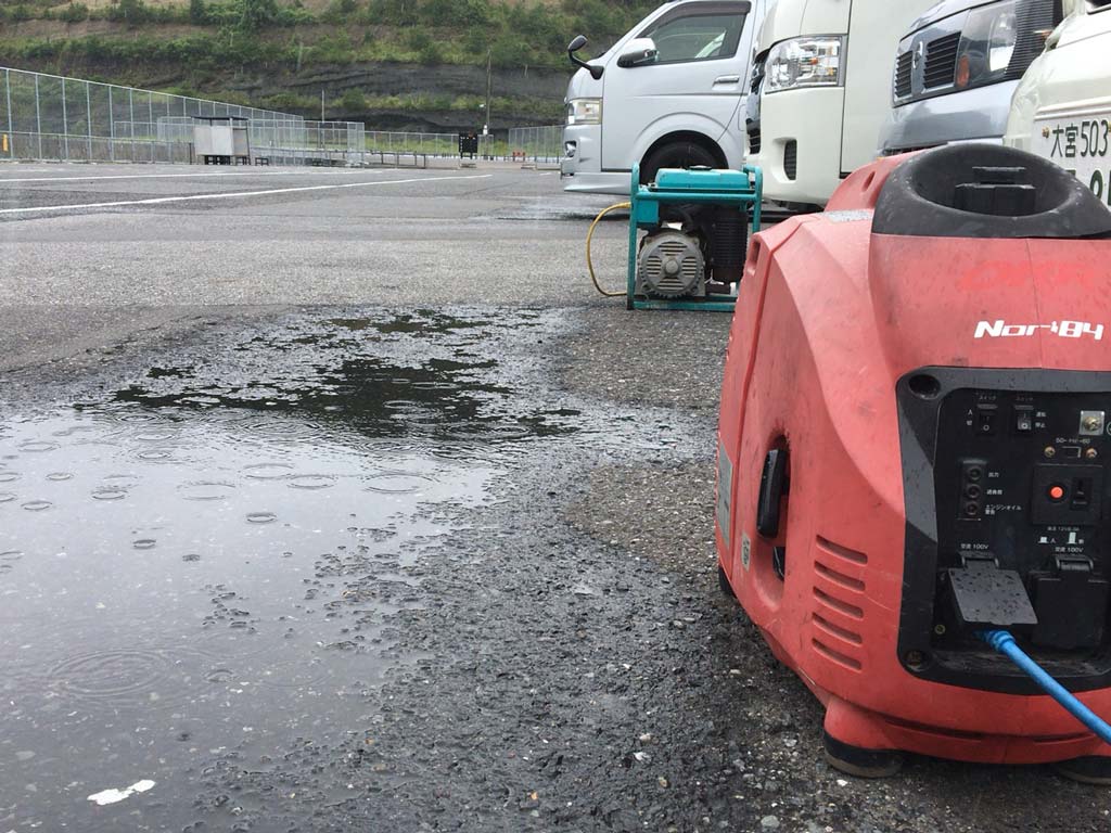 10時の時点では朝からずっと降り続いていた雨が強くなるでも弱くなるでもなく、路面も見事にフルウェット。