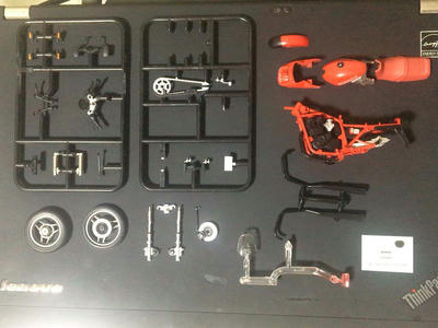 そういう訳なので、これは接着剤がないとマフラーとミラーとウィンカーがどうにもならないようなので、明日の仕事帰りにプラモデル用の接着剤を買ってきてくっつけんべー。
