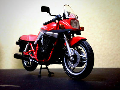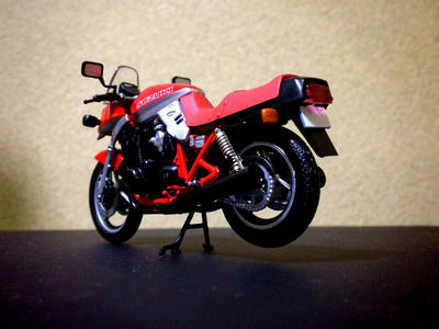昨日それはもうイライラしたマフラーとウィンカーとミラーとシールドとステップ、それからブレーキペダルとサイドスタンドを接着剤をですね、『昨日はよくもコケにしてくれたなぁ!けがらわしいプラッチックどもめ!我が悲しみと憎しみを知るがいい!あっひゃっひゃっひゃっ!!』とか何とかブツブツ言いながらくっつけてやりましたわ。