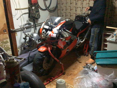 ちょっと車の中を空にしたい事情が発生しそうな昨今、工場長が暫くVFRを預かってくれるっていうことで、お言葉に甘えてVFRを我がトランポセレナから移動。