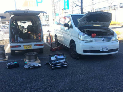 ただ、そのついでに場所とジャッキやら工具やらを借りて車検のための整備をしたっていうか…。