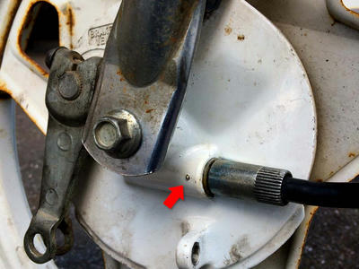 そういった訳で、横からドリルで小さい穴を開けて割ピンを短く切り詰めたやつを打ち込んで抜けないようにしてもらった。