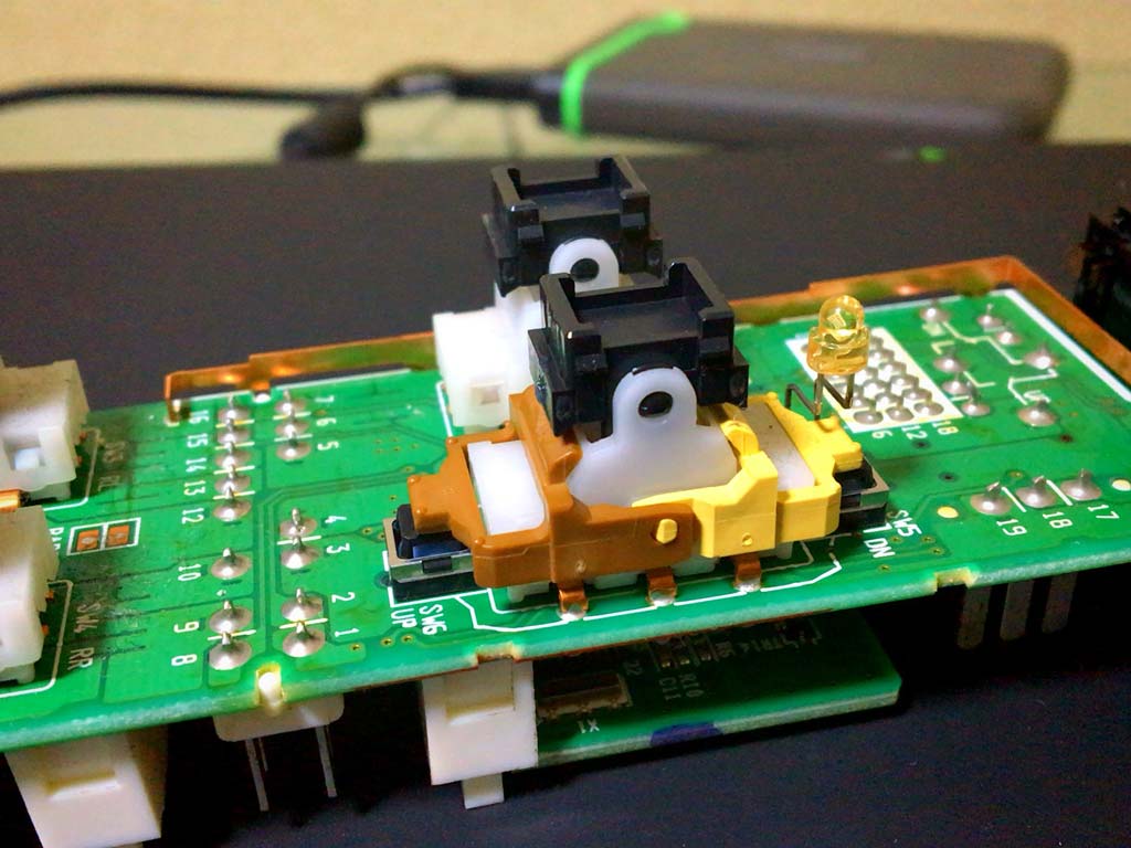 カバーが外れたら今度は全面基盤が詰まっていて、スイッチがどうなってるのか見えん。