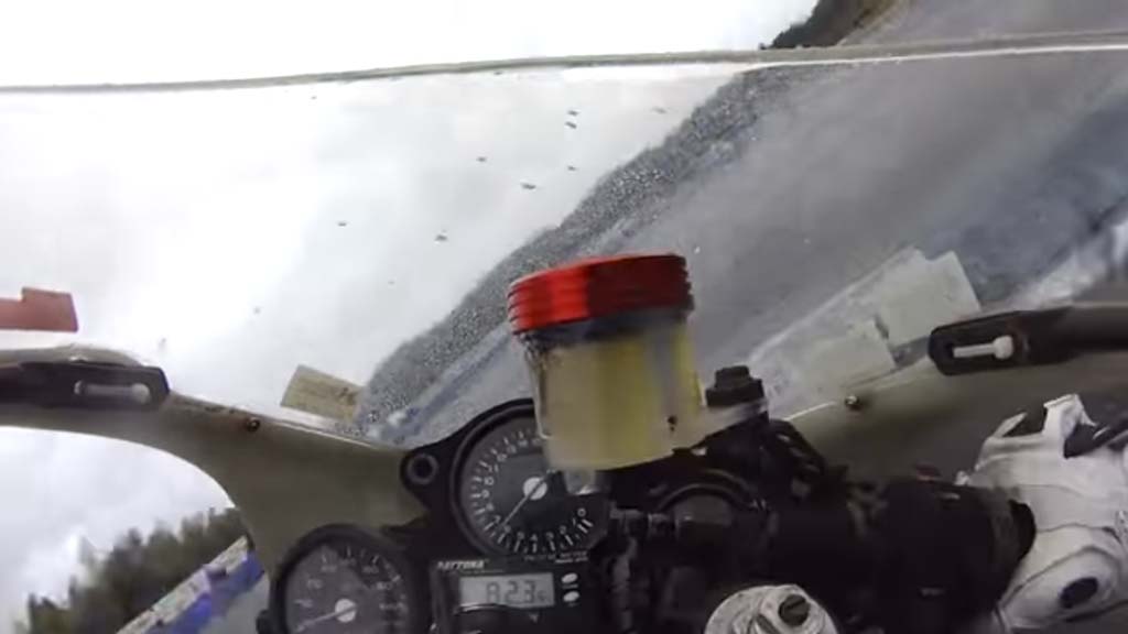 茂原の東コースを1分フラットくらいのペースでこれ以上ないくらいの綺麗なスリップダウンなので、もちろん怪我もなく、それでいて普通に雨が降ってる状態だったので仲間内以外ではひとりも走ってななかったこともあって特に誰かに迷惑をかけることもなく。