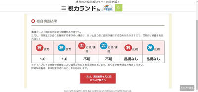 これはネットで視力検査ができるサイトでやったやつなので眼科で検査したら視力の数字は若干違うのかも知れないけども、以前同じサイトで測って0.5だったのが1.0に上がってるので、視力が回復したっていうところは間違いなさそうだ。