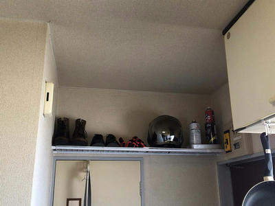何しろ狭いアパートなので、玄関もそれ『玄関』と言ったら誇大広告でJAROに訴えられちゃうじゃろって勢いなので、Molletでブイブイ言わす時用のヘルメットとかブーツとか、スーツを着る時の靴とか普段のスニーカーとか、とにかくゴチャゴチャしているのを何とかすることにする。