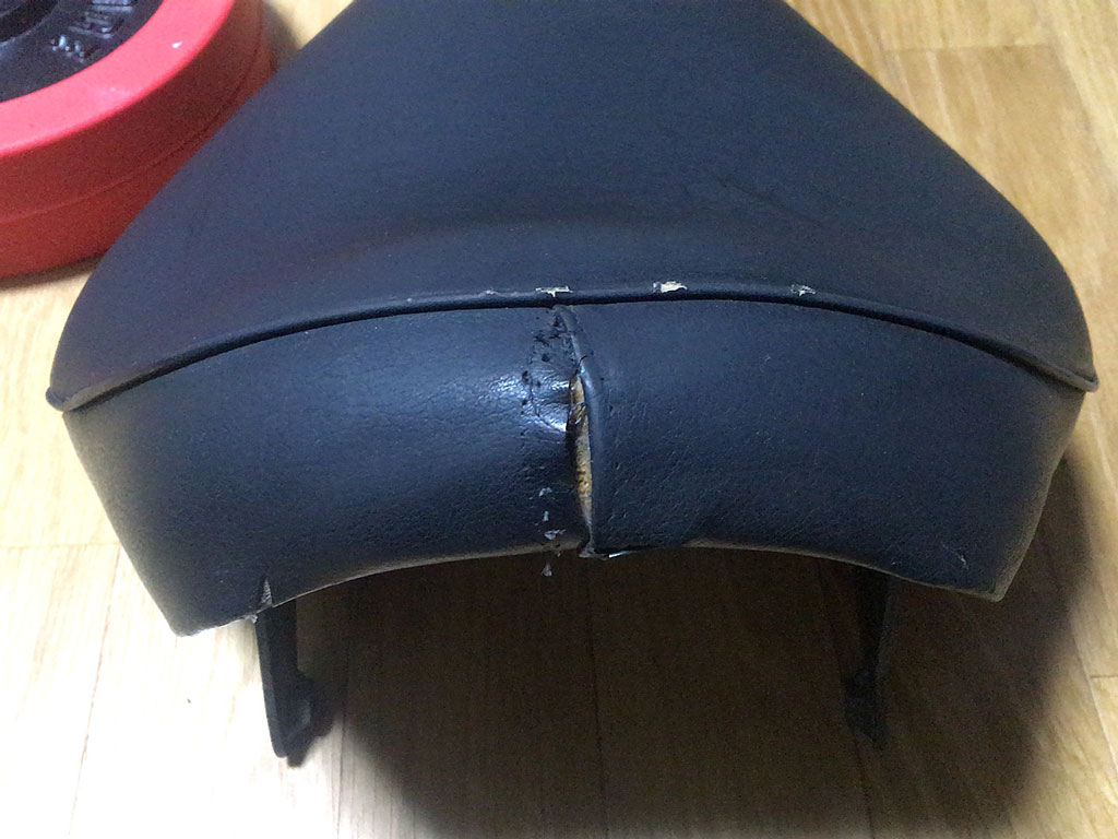 古いバイクの中古部品、それも常に身体に触れる部分の部品で、買値を考えてみれば状態は良い方だと思うのだけど、後ろの縫合部分が開いてしまっている。