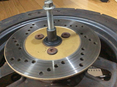 パッドを外してキャリパーのボルトをかなり緩めてなんとかディスクがキャリパーに入ったっていう勢いなので、パッドが入ってる状態ではかなり仮組すら不可能だ。