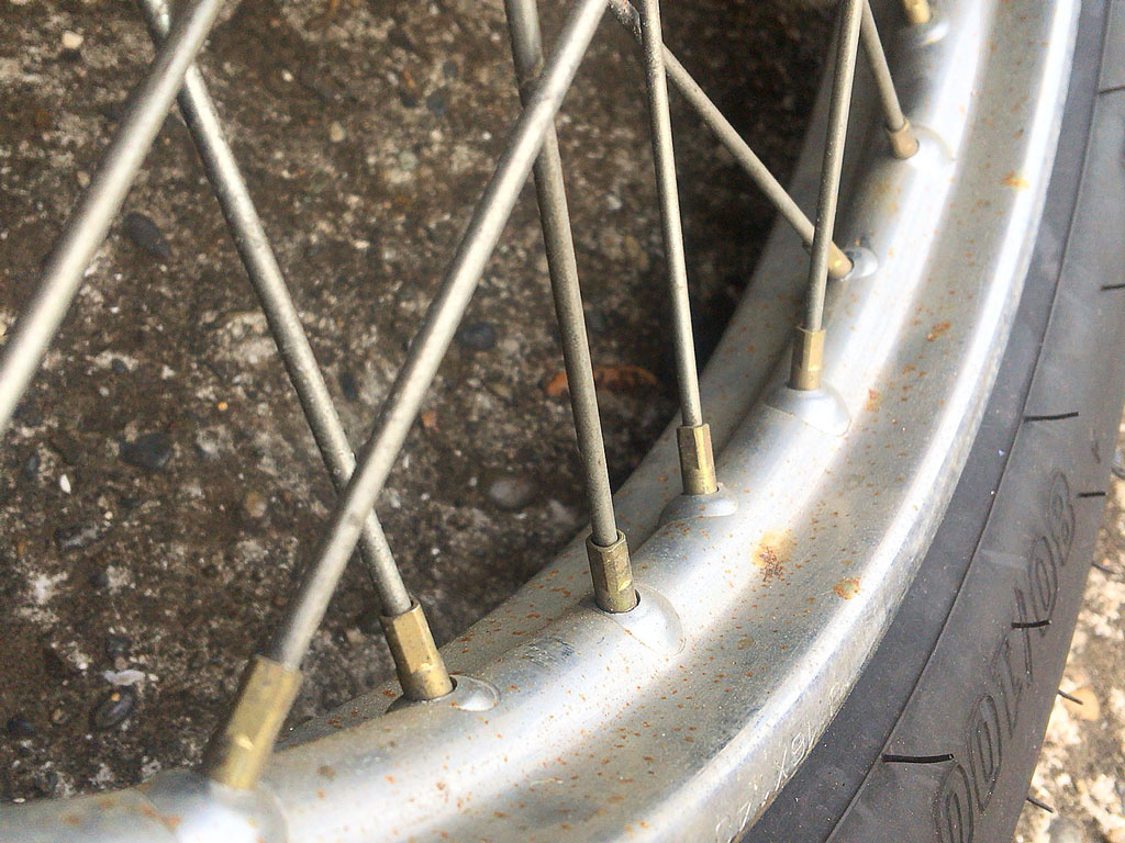 部屋にカギを取りに帰るのが面倒だったのでシートをちょっとめくってみたところ、改めて見てみるとホイールなんかもずいぶん錆びに錆びている。
