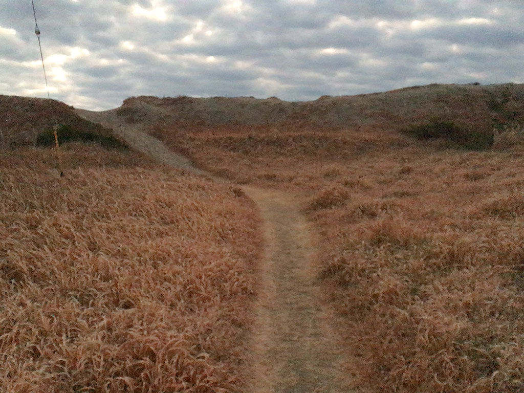 思いの外急な砂の坂をちょっと苦労して昇ってみると、ビーチタワーや一松海岸の喧噪がウソかのように、先客は老夫婦と海に浮いてるサーファーひとり。