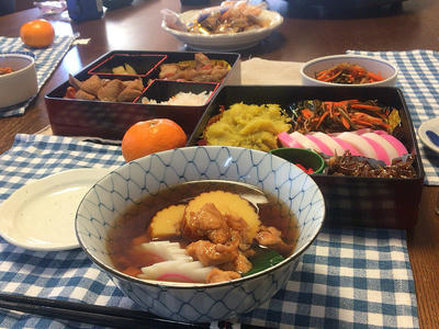 あにはしの息子は遊びに行っていていなかったのだけど、正月らしい食べ物をいただいてほっこり。
