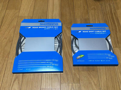 Shimanoのロード用ブレーキケーブルセットとシフトケーブルセット。