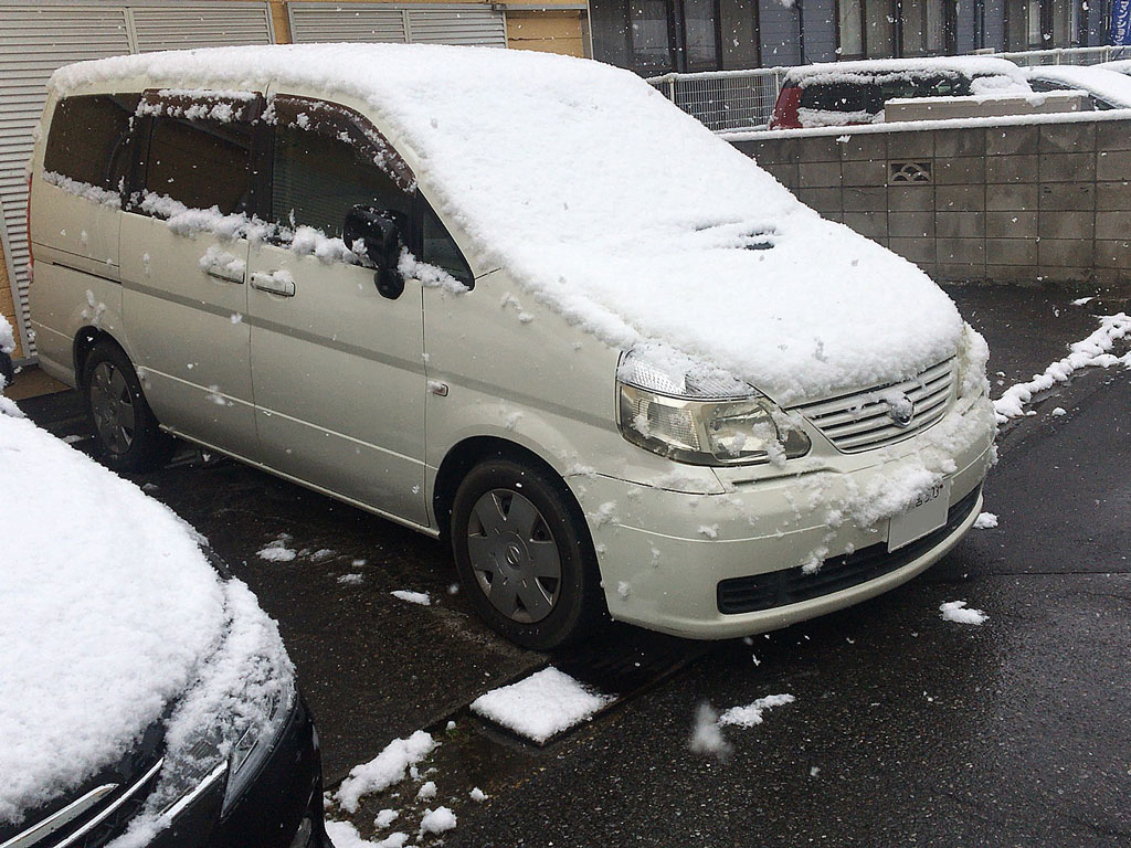 凍結っていう感じでもないし、車に積もってる雪もまだフカフカなので、雪をどかしたりついでに小っさい雪だるまを作ったりしつつ、開店と同時に近所のスーパーに物資調達に出掛けた。
