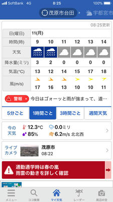 9時には止むんと違うのか?とウェザーニュースのアプリをチェックすると10時まで降る予報に変わっとるf(^_^;)