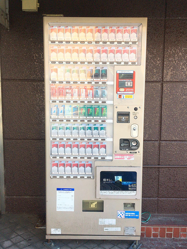 かなり時間に余裕をもって出たので、到着も少し早くて車を駐車場に入れてから付近を散策していたのだけど、近くで通りかかったタバコの自販機の驚異のマルボロ率(笑)