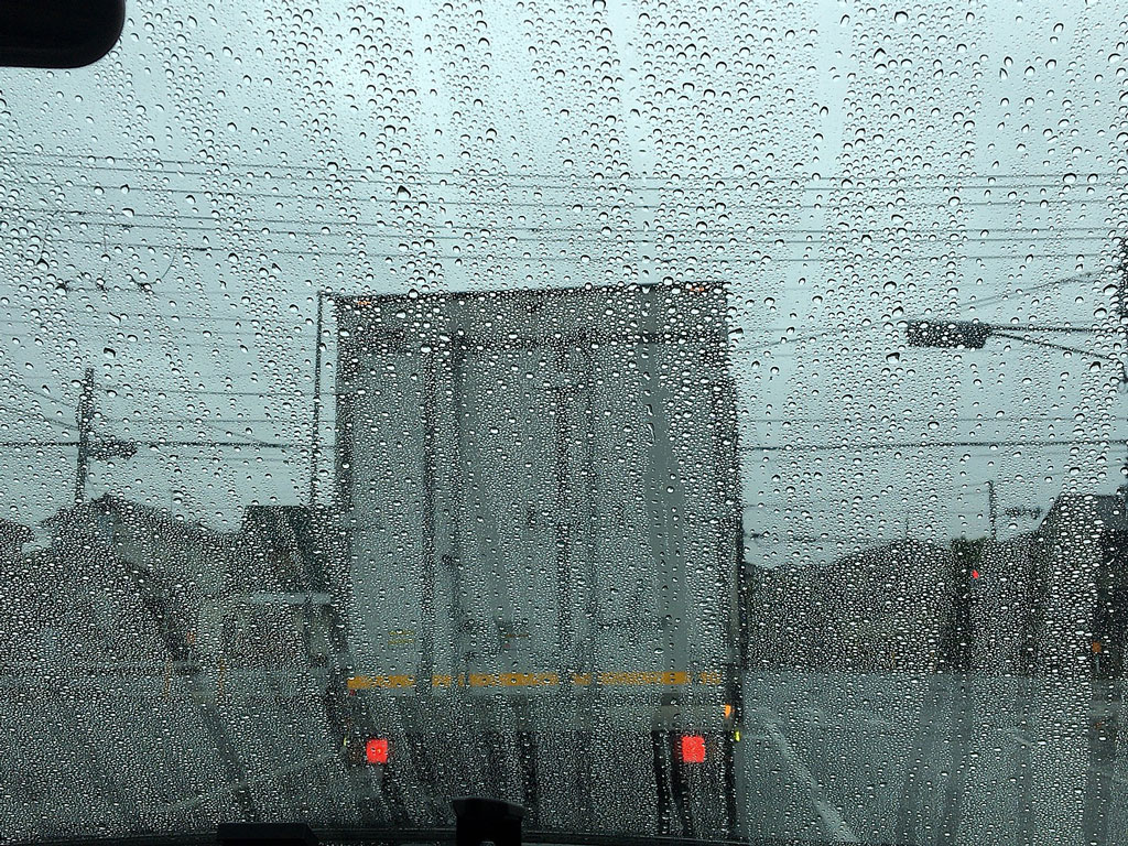 運転席側は割と良く飛んで行くものの、助手席側と中央下部の辺りは60km/h程度じゃあまり飛んで行かず、ワイパーが必要な感じ。