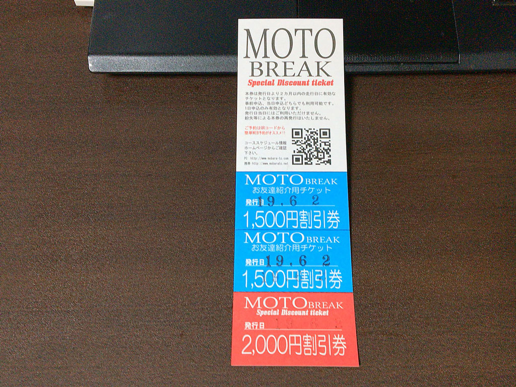 なので7月のサーキット走行予定はなしで、8月にはまたモトブレイクに参加して茂原の東コースを走りたいな…と思ってんですけどね、6月2日に参加して発行された割引チケット。